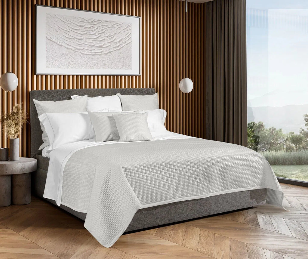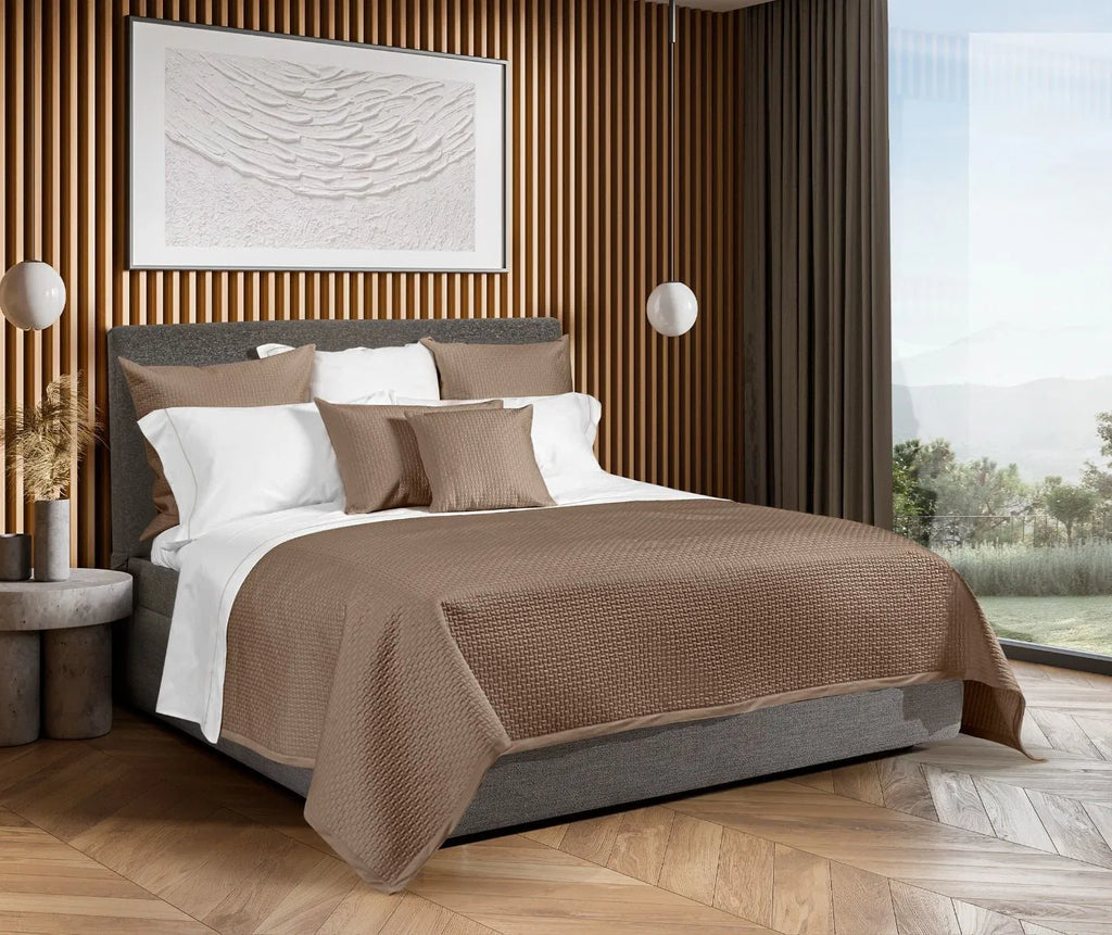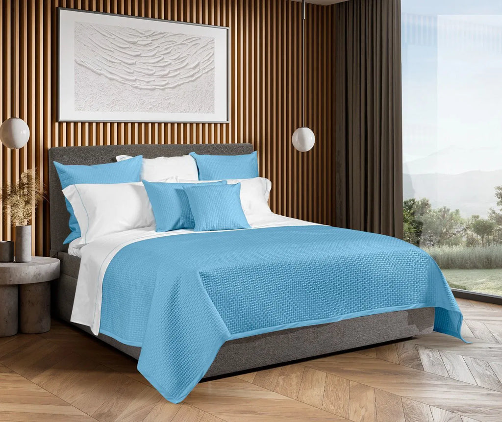 Simplicity and pure luxury are the characteristics of the Scacco collection; perfect to give a modern touch to your bed. The sheen of our beautiful sateen completes the elegance of this quilt, finished with a sateen border in matching color. Filled with a layer of warm but light weight polyester. Available in many colors and in Twin, Queen and King sizes. Made in Italy.