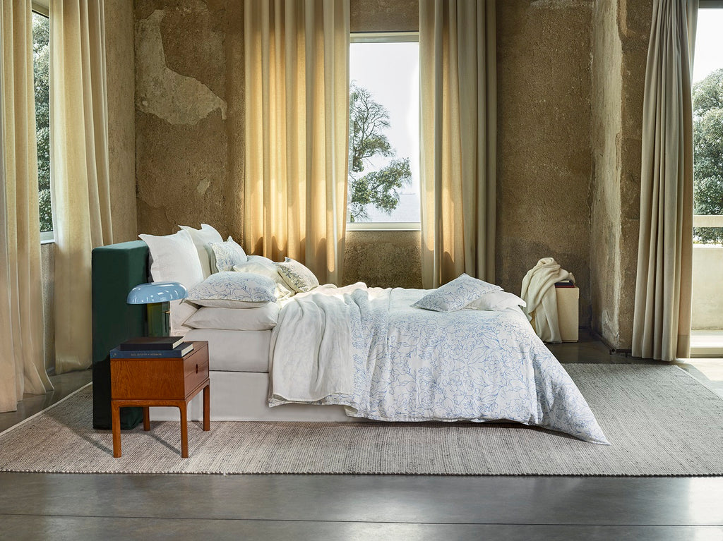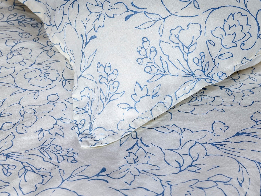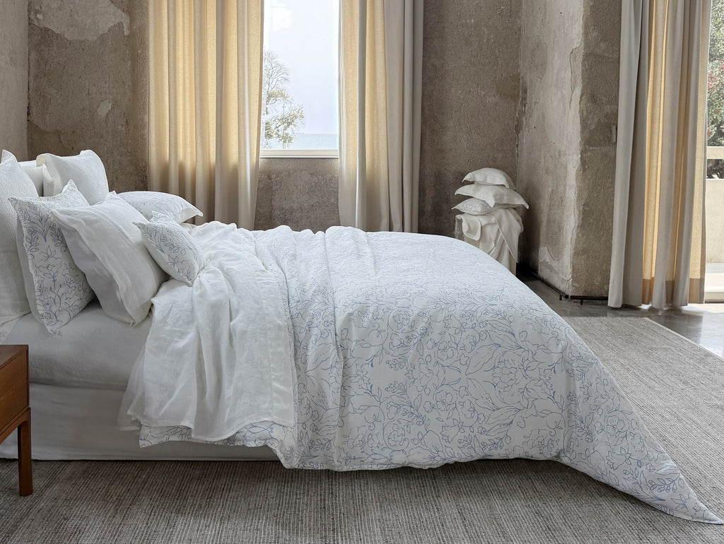 The Amor Perfeito Duvet Cover pays homage to these iconic springtime blooms, with hand-drawn vines and leaves gracefully printed on 100% linen.