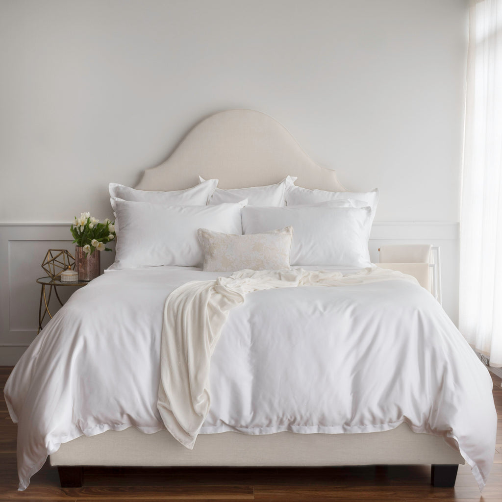 Micromodal is known for its velvety texture, often compared to the feel of silk but without the high maintenance. Enza's pick is exceptionally soft, a solid white sateen made of 100% MicroModal, the simple sophistication of sustainable fibre.