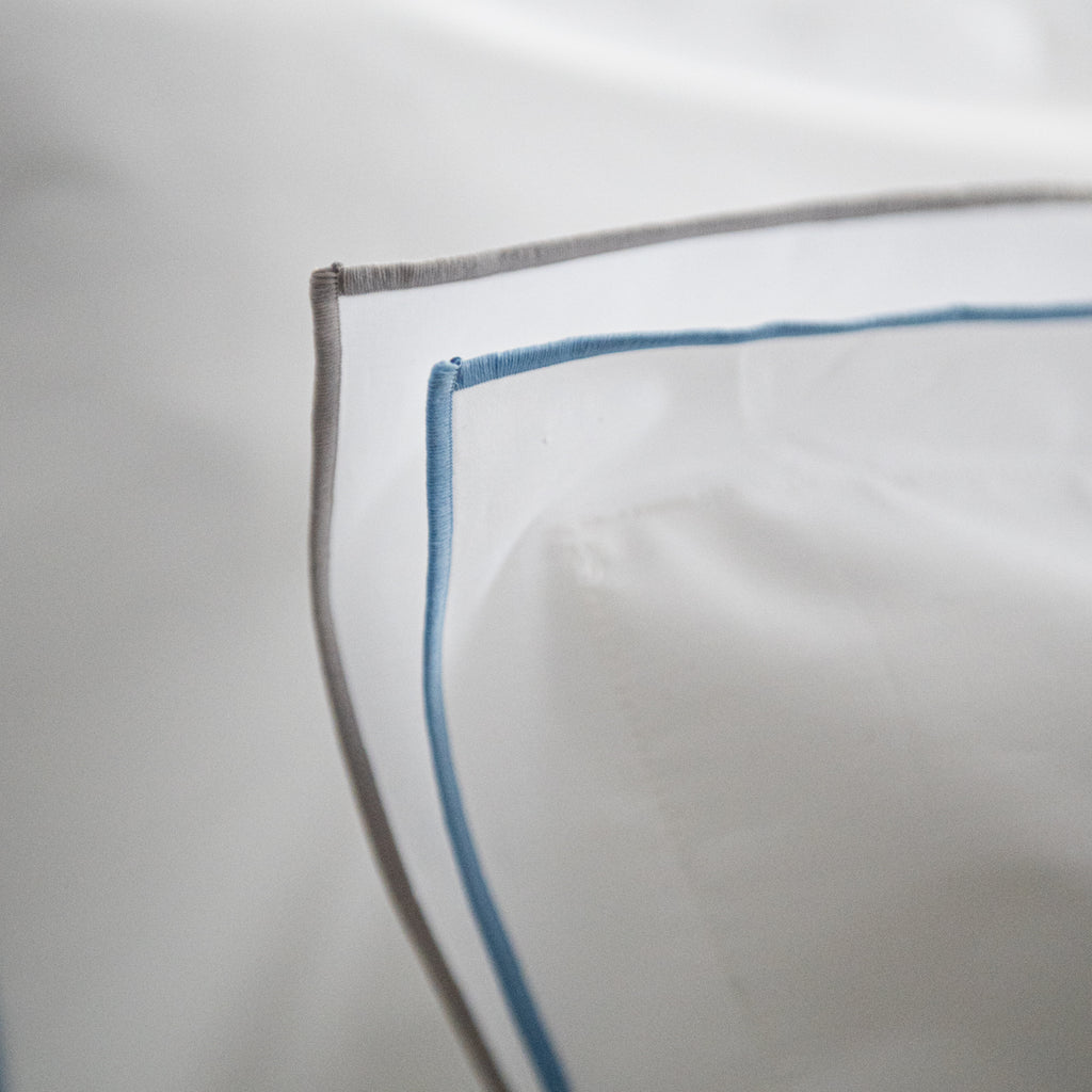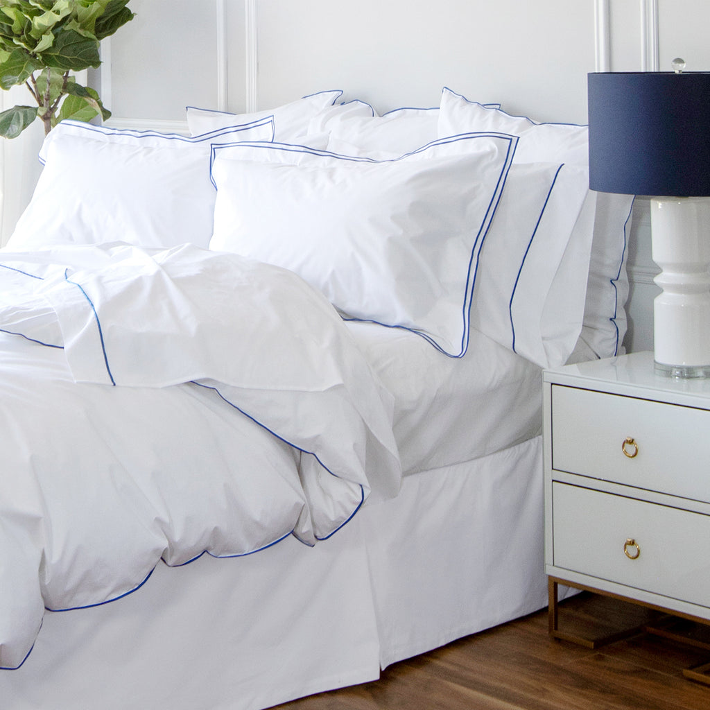 This crisp, white percale is woven with the finest long-staple cotton and elevated with a contemporary and elegant purl stitch edge detail. Customize your look and create the perfect accent for your space by choosing your own edge trim colour. Single shams are extra special with a double open flange and purl stitch. Flat sheets and pillowcases feature a generous 3" cuff with purl stitch.